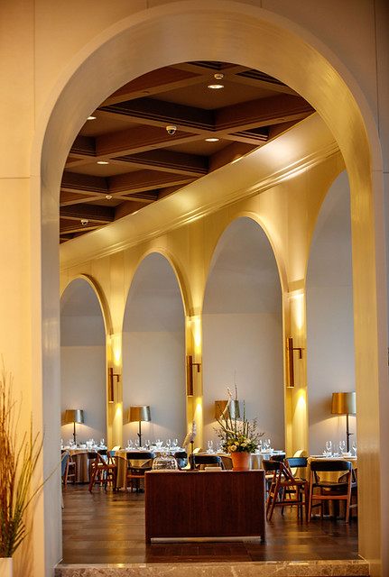 Graceful arches and distinctive lighting add to the ambiance while floor-to-ceiling windows provide a natural brightness. Family and friends can be bathed in the sunshine, indoors and outdoors, relax, and enjoy the unparalleled scenery of the course.