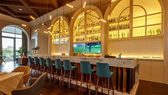 餐厅优雅的拱门和独特的灯光为用餐增添了氛围,而高大的窗户则为室内提供了自然光线,会员及家人朋友可在室内外沐浴阳光,放松休息,欣赏球场上无与伦比的风景。